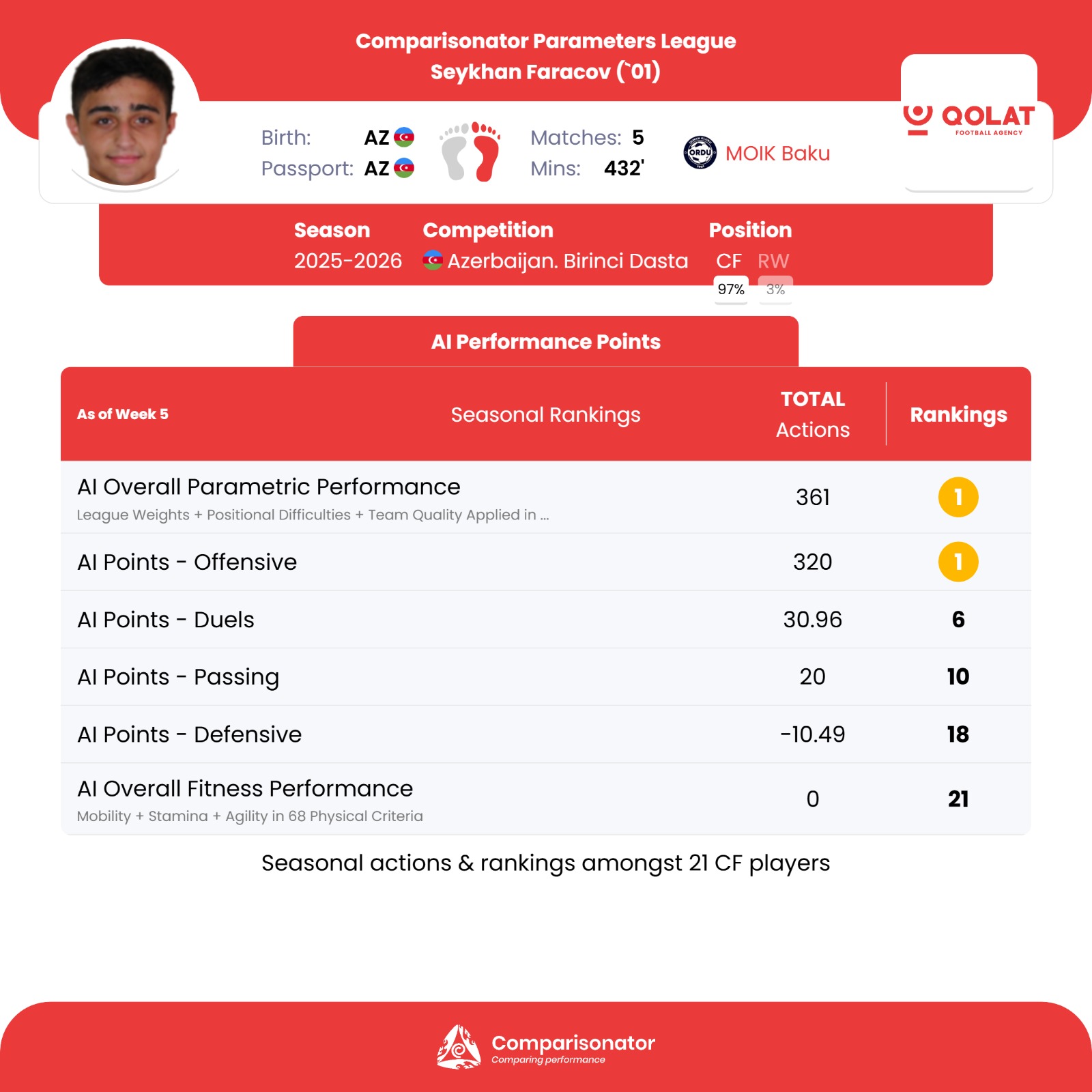 Since October 2023, QOLAT Football Agency has been offering professional player transfer services under the umbrella of QOLAT Sport Services. With a strong foundation in sports event and organization management since 2015, QOLAT Sport Services has built a reputation for excellence, reliability, and expertise in the sports industry. Expanding into player transfers, QOLAT Football Agency is committed to facilitating seamless and strategic career moves for footballers, leveraging our industry connections and deeр understanding of the global football market.